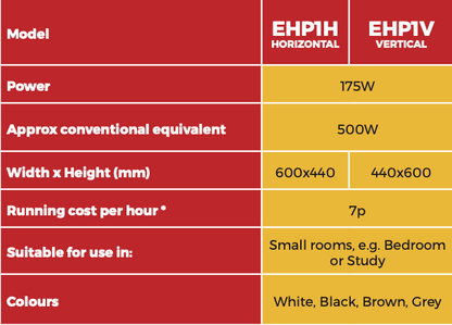 Black / Vertical Option (440mm Wide x 600mm High) (EHP1-175W-BLACK-VERT) 46369795899644