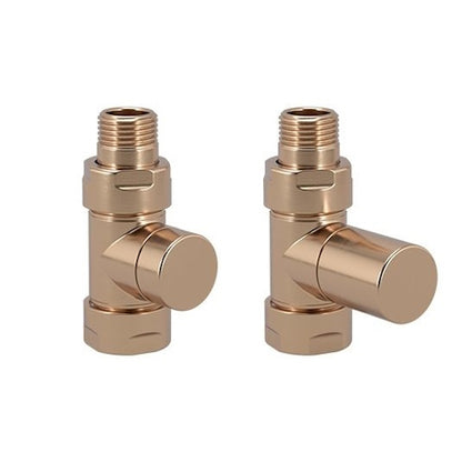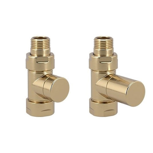 Stylish straight manual radiator valve set. Brushed Brass, Brushed Black Chrome or Brushed Bronze finishes. Suitable for pipework from the floor.